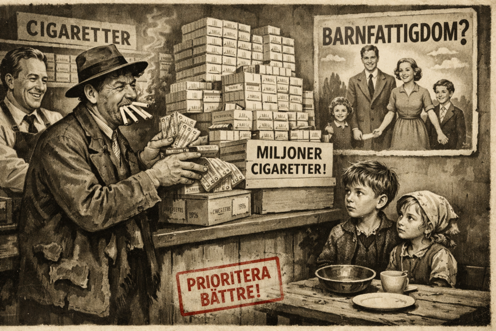 Sedan är det inte sagt att alla gör så, men det är ju å andra sidan dom det är synd om. Tyvärr är det väl de som kommer i kläm på grund av just det som beskrivs här. Någon torde ha siktat lite fel här. Frågan är vilken sida det är som gjort det. Jag kan dock inte släppa tanken på det faktum att det finns ett fåtal människor, som klagar på att de är fattiga samtidigt som dom lägger så mycket pengar på cigaretter, som ju ändå kostar uppemot 50 kronor per paket. DET om något skulle man kunna fixa en god lunch på!
